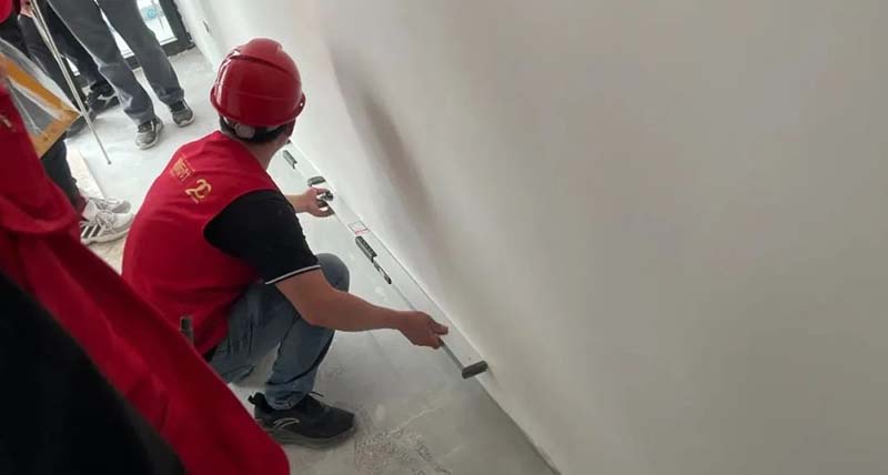 ▲ 檢查墻面踢腳線平整度
