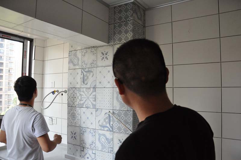 ▲檢查貼磚工藝