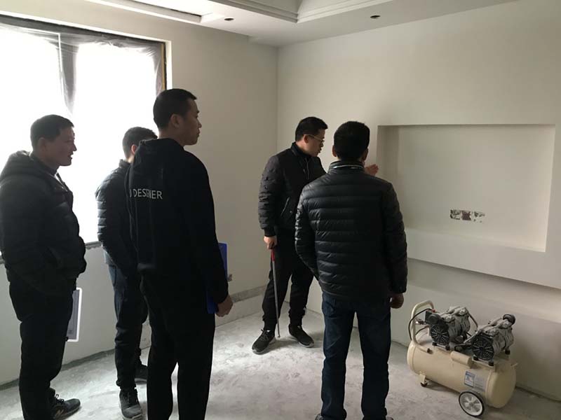 值得一提的是,本次巡檢的工地皆為別墅項(xiàng)目,幾戶業(yè)主都提出了更多改建的要求,特別涉及承重、防水、下水等幾大重點(diǎn)問題。如在上下樓板間打孔安裝下水管,工程總監(jiān)盧建鋒特別強(qiáng)調(diào)一個(gè)孔只能安裝一根下水管。2根及以上的管道共用一個(gè)孔位,特別容易發(fā)生滲漏,且后期維修復(fù)發(fā)性大,必須從源頭杜絕問題產(chǎn)生。