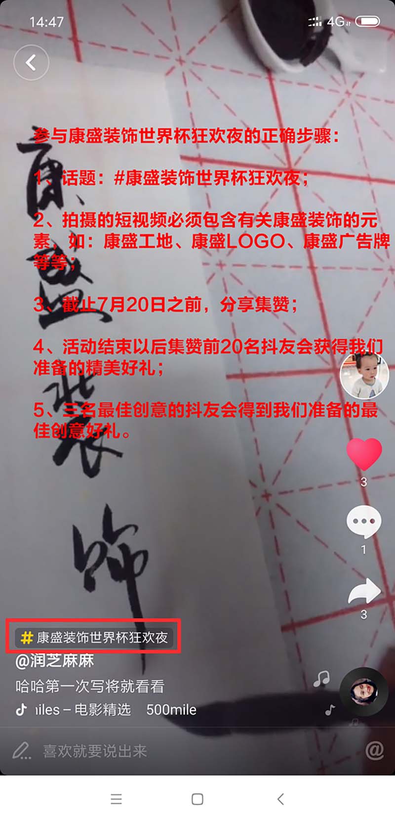 1、以#康盛裝飾世界杯狂歡夜 為標(biāo)題;