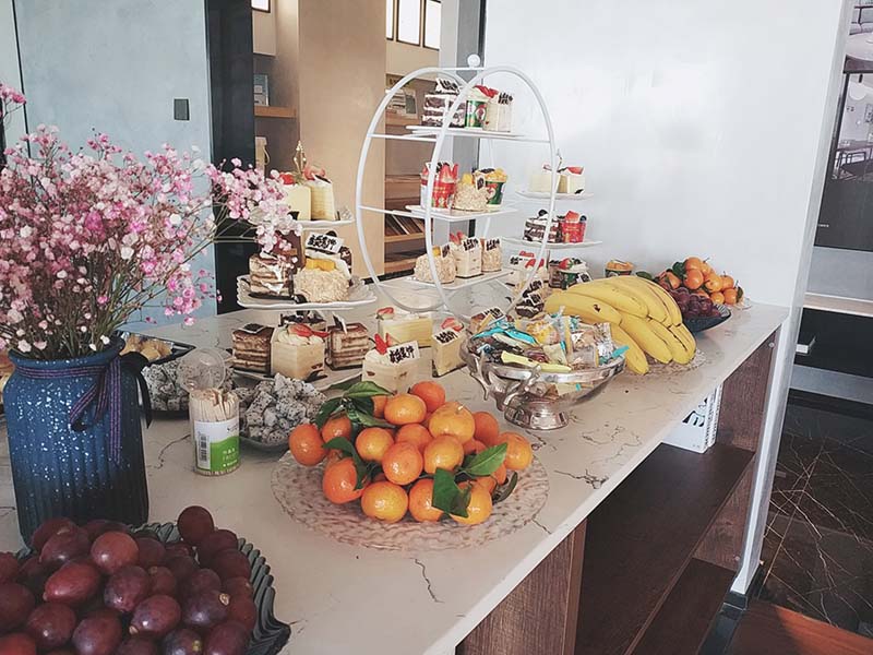 ??? “ 唯美食不可辜負(fù) ”,除了充滿樂趣的花藝沙龍,康盛還精心準(zhǔn)備了美食,蛋糕、水果、小零食,還有烘焙師現(xiàn)場為你制作餅干和雞翅。