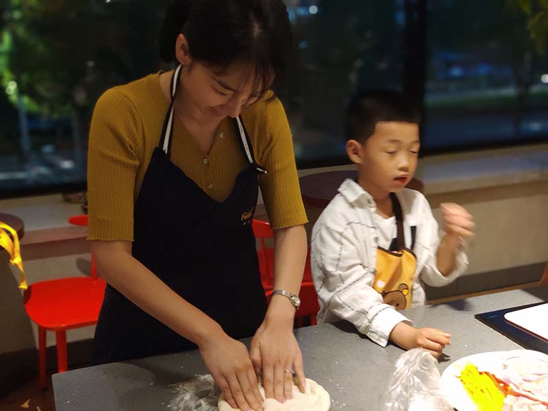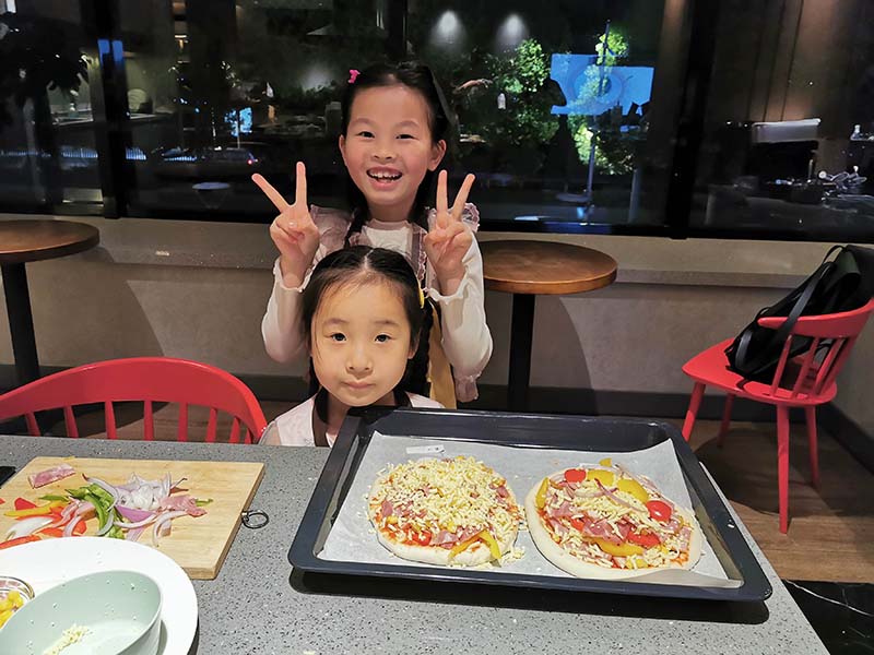 我們今天的小家長(zhǎng)可是很挑剔的:這個(gè)披薩我們還要吃得哦,你小心點(diǎn)!